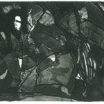 Solvent transfer, chalk transfer and coloured pencil on BFK